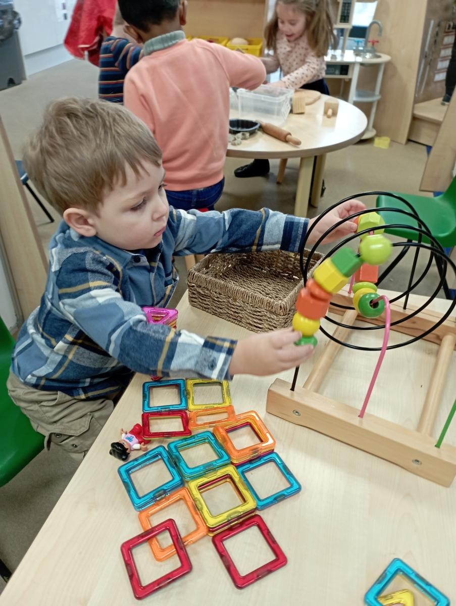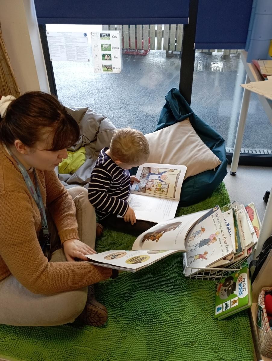 Each day the children have the opportunity to listen to stories, sing songs and do short maths and language activities. In the summer term as part of their readiness for school the children are introduced to phonics sounds and games.